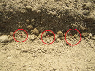 B一粒ずつつまみ、蒔いていきます。