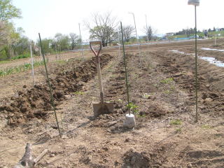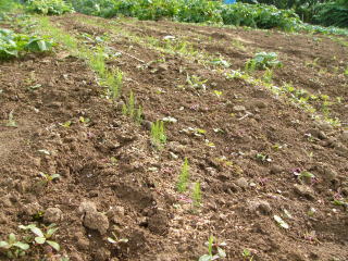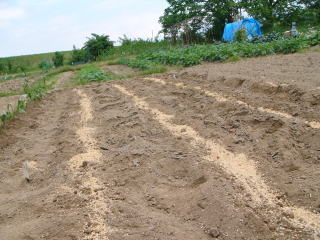 @良く耕した地面に鍬等で土を盛り上げ高床とし水はけを良くするように心がけました。