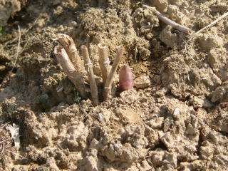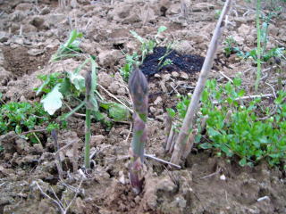 5年ものアスパラです。今年の芽だし、遅いです。