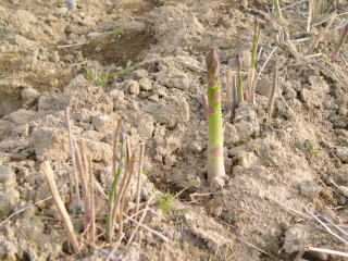 定植5年目のアスパラガス。今年は芽出しが5日ほど遅かった