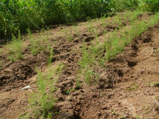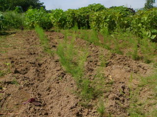 今年種まきしたアスパラガスがしぶとく生き残っていました。