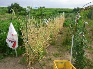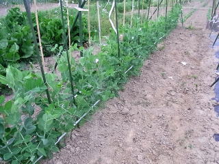 終焉間近のサヤエンドウ。収穫期は約15日。ま、棄てづくりです