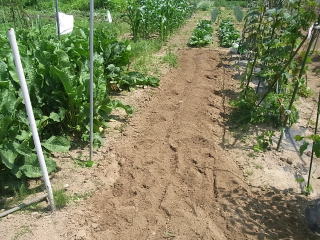 Bここに約6センチ(おらホでは2寸)間隔で1粒づつ種を置いていきます。この時まだ土を上掛けしません。
