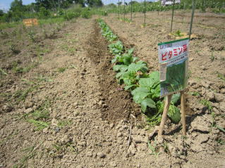 収穫まで2回程度顆粒状合成肥料をパラッと根の周りに蒔いています。その時、両脇から土をかけて盛り上げ状態にします。おらホではこの作業を「サクヅガケ」と称しています。