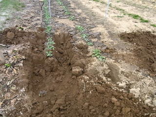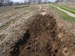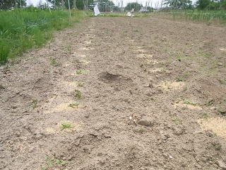 雑草除去直後のゴボウ。鶏糞を投与しながらの作業でした。