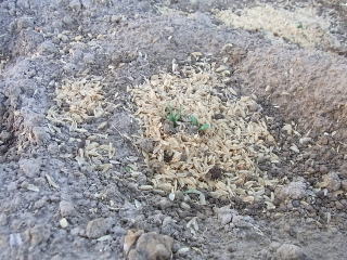 写真中央部に緑の芽を確認出来ます。間引きしません。