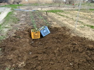 雑草を取り、鶏糞、顆粒状肥料を蒔いて土寄せしました。今年は