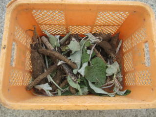 昨年未収穫の越冬ゴボウ。ジャガイモ耕耘に邪魔である。2023.04.15 11:06 春ゴボウ収穫。キンピラにしていただいた。2023.04.16 13:14
