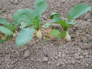 辛みがあるのか余り害虫はつかないようですし、野鳩も発芽したばかりの芽をつつかないようで楽です。