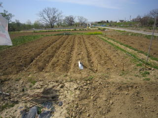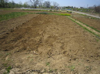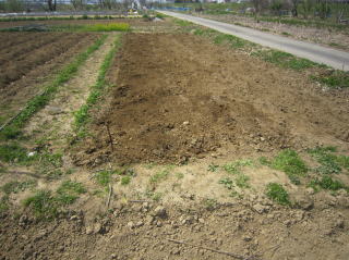 ジャガイモ植え付け前の耕耘完了。1週間程前に石灰を蒔いていました。石灰蒔きは土壌をp中性化するためにかかせません。2018.04.21 7:10