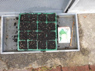 キャベツの連結ポット種蒔き完了です。種は、高価です。