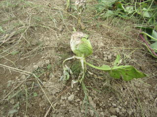 | キャベツはホームセンターで苗として売っているようですが1本70円〜80円くらいで明らかにコスト高。おらホでは昨年から萎え作りに挑戦しました。秋に種を蒔いて苗を作り、定植します。収穫は翌年6月頃です。 種まき 蒔き時 例年9月1日前後にしている。人によってはポットに種を蒔き適当な大きさになってから移植するが、おらホでは家庭菜園内で苗を作ってきた。 蒔き方 @良く耕した地面に高さ15センチ、幅45センチほどの床を作ります。 Aこの床に深さ3センチほどの溝を切ります。 Bここに1粒づつ種を筋蒔き風に置いていきます。この時まだ土を上掛けしません。 C買い求めた種の残り具合を確かめ、残っていたら適当に蒔き、足りないようだっらB種を拾い集め適宜蒔いていきます。 D土をかけてからその上に籾殻を籾殻を蒔きます。 ポイント 出来るだけ均等に薄く蒔き、間引きしないように心がけています。 手入れ 肥料 芽が出たら顆粒状肥料、尿素を蒔いています。 雑草取り 雑草取りはマメにしなければなりません。 定植 準備作業 @良く耕した地面に尿素、油かすなど均等に降り、更に良く耕し数日間放置しておきます。 定植 @穴開け器で20〜30センチ間隔となるようにとなるように穴を開けていきます。 A1本ずつ苗を植えていきます。 定植後の手入れ 肥料 顆粒状肥料、尿素を2回ほど投入しています。おらホでいうサクヅカゲです。 収穫 例年6月中下旬頃でしょうか。適当な大きさのものから適宜収穫していきます。 |