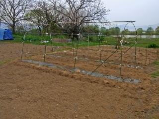 まずはマルチ張りです。風のない早朝に作業完了しました。