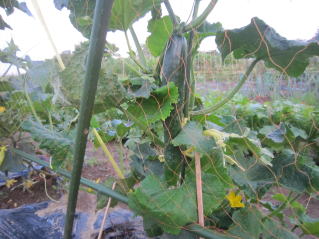 曲がりはネット網目が小さいからか?2020.07.03 4:29 キュウリ最盛期。毎日収穫、うれしい悲鳴。2020.07.09 18:02