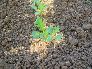 もう立派な京菜です。ギザギザ葉っぱが特徴です。間引きし土寄せしました。