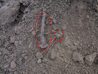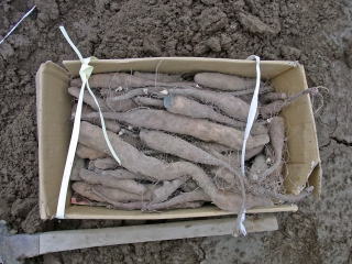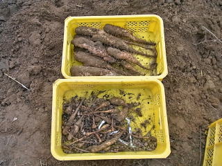 ラ化」しています。右園内が種芋を養分にして成長したナガイモ