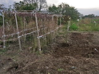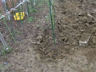 ツル張り用を兼ねた目印イボ竹の周りをスコップで掘り起こしま