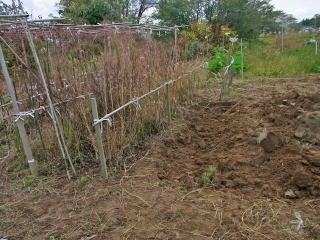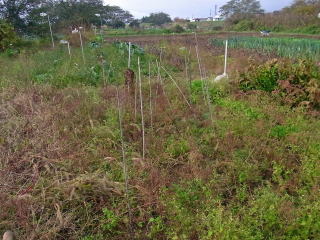 雑草ほったらかしにしてしまいました。右2列がムカゴ1年目の