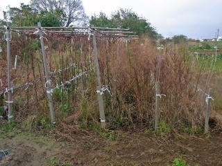 1年目のムカゴの支柱は竹です。写真のようにして絡ませます。