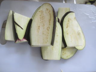 | 今日の収穫。2025.08.20 6:17 | ナスを写真のように薄く切る。2025.08.20 6:30 | ||||||||||||||||||||||||||