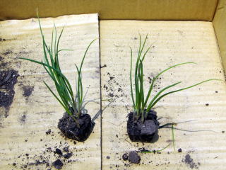 @写真のような状態になっていますのでこれを1本ずつほぐします。(これが手間がかかる。)人によってはそのまま定植する人もいますがもったいないし、収穫時は同じ太さになります。