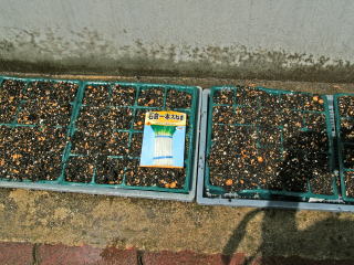 ポット苗ネギの発芽確認。 2008.05.15 6:50撮影