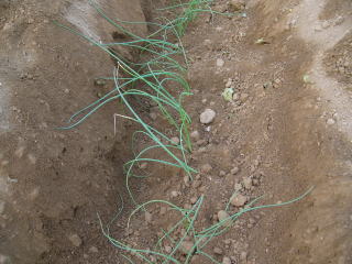 溝を切り、ポット苗を1本ずつほぐして植えていきます。