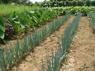 収穫を待つネギ。ほったらかしにしてきたので雑草が蔓