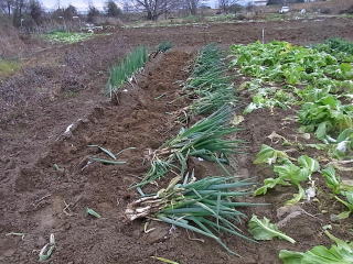 持ち運びます。今年のネギ、土かけを怠ったので白い部分が短い