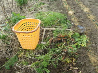 収穫残りのニンジン。2025.12.20 12:04 際魚の収穫。2025.12.20 12:11