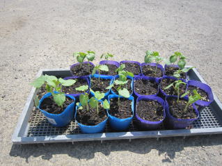 約5日で芽出ししたことになります。やはり自家採取した種からの芽出しは難しいですね。2019.06.05 7:46 本葉が出て、大きからず、小さからず、定植に丁度良い大きさです。2019.06.23 13:47