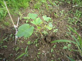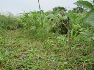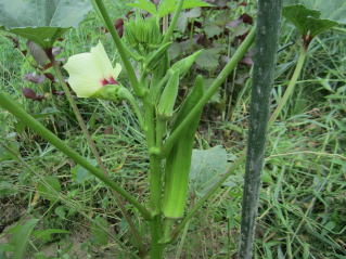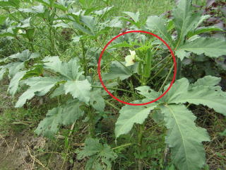 | 洪水に負けず生き残っていたオクラ。周りの雑草を取り除く。2020.08.30 8:36 |