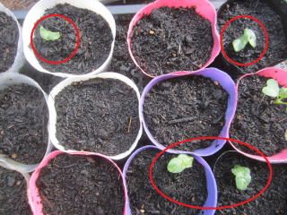 | オクラ、芽出し確認。まだ出そろっていない。2023.05.21 17:20 |