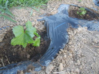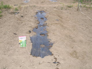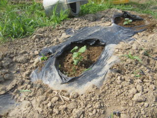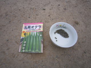 オクラの種蒔き。マルチを開け、1か所3-4粒の種を置いた。2024.05.06 5:20 |