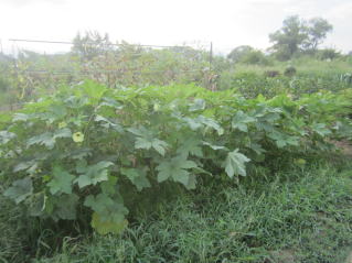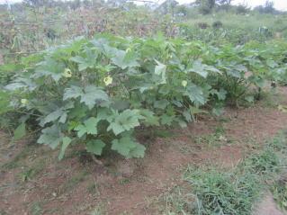 | 雑草取りを待つオクラ。2025.08.30 7:48 |