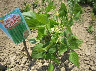 | 種まき 蒔き時 種はツル無しササギに決めている。ツルを這わせる支柱立てが面倒くさいからだ。 例年5月1日頃1回目を蒔き、芽が出て双葉になったら2回目と2回種蒔きしている。 これで、1ケ月くらい収穫を楽しむことができる。6月頃蒔いて9月収穫ということもあるが、やはり蒔き時というあるようで6月下旬に蒔くと育ちが悪かった時があったので種蒔きは5月中と決めている。(というか、外の作物に忙しくて手が回らないのがホントの話) ササギも他の作物同様水はけが悪いとダメで湿った特に地面に実が接触していると間違いなくカビがはびこってくる。また、最上川の洪水でおらホの農園が水没すると当然全滅となる。 蒔き方 @良く耕した地面に移植べらで約30〜45センチ間隔で、直径約6センチメートル、深さ3〜4センチメートルの穴を掘ります。 Aうね幅は60センチ位。何故か60〜70センチ。 Bここに2粒づつ種を置いていきます。この時まだ土を上掛けしません。 C買い求めた種の残り具合を確かめ、残っていたら適当に蒔き、足りないようだっらB種を拾い集め適宜蒔いていきます。 発芽 1〜2週間程度で発芽しています。 ポイント @穴のそこはできるだけ平面にしています。凹凸のある穴に種が蒔かれ土をかけると、かけられた土の厚さが一定でなくなり発芽しないものが出たり、発芽が早いものと遅いものが出てアンバランスとなります。 A密着しないように2〜3センチはなして種を蒔くと、お互いに邪魔し合わずに成長する。 B連作していません。 手入れ 肥料 収穫まで2回程度顆粒状合成肥料をパラッと根の周りに蒔いています。その時、両脇から土をかけて盛り上げ状態にします。おらホではこの作業を「サクヅガケ」と称しています。 害虫対策 余り害虫はつかないようですが、ついたら市販薬剤噴霧です。 それよりも発芽したばかりの芽を野鳩がつつくので、これが頭に来る。ポット植えして萎え移植する人もいますが、私は不要となったCDを棒状のものに糸でつるして、あのピカピカで脅かしている。 ポイント サクヅガケの時、茎が倒れないようにコンモリと土をかけています。地面にふれるとカビがはびこりますので注意しています。 収穫 スーパーで売っているような適当な大きさになったものから適宜つみ取っていきます。 大量に収穫したときはゆでて天日干しにして保存しています。保存したささぎは秋、冬に水で戻して煮付け(ささぎの戻し煮付け)にします。 調理 おひたし、イルカ汁、ささぎの戻し煮付けetc. |