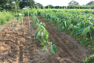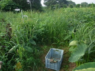 里芋草むらの中に埋もれてしまいました。今年は日照りで出来が