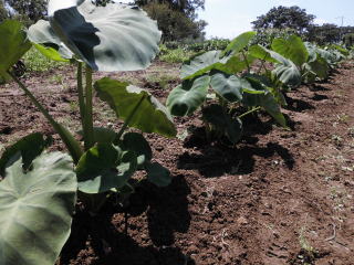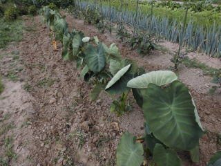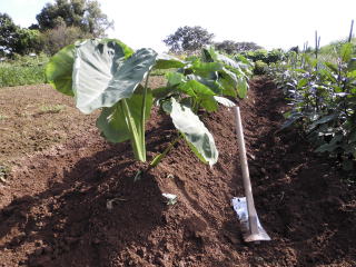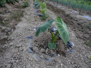 里芋らしい葉っぱが出てきました。乾燥が大敵です。日照りの時