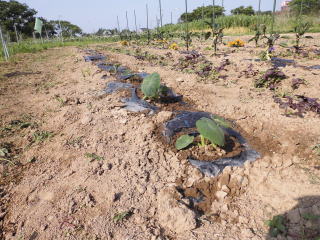 お盆頃になっったらマルチを撤去し、通気がよくなるようにしています。