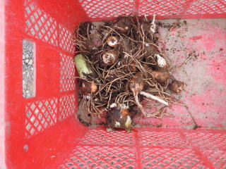 1株からの収獲。子イモがありますがまだまだ小さいです。