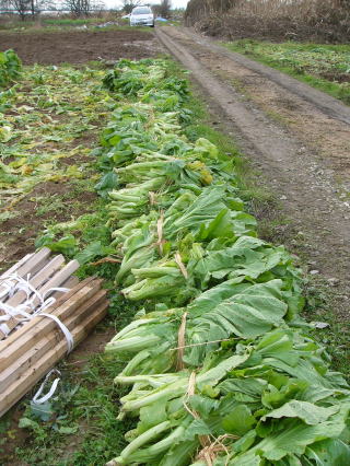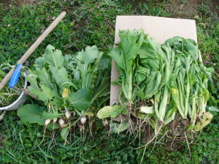 残った青菜はこのまま越冬させて来春に茎を収穫します。