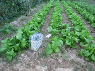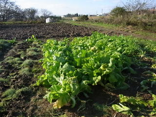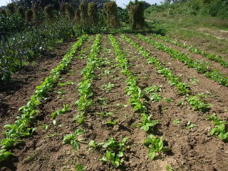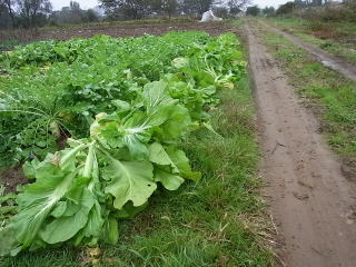 左から4畝が青菜。今年はまずまずの出来です。間引き収穫し
