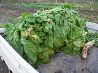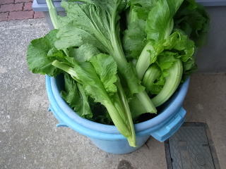 前回収穫は知人へのおすそ分け。写真青菜は自家用にします。