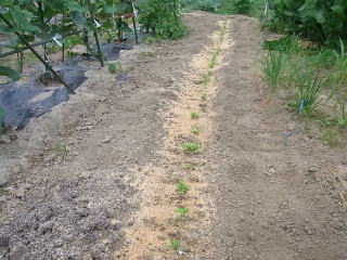 みようと思ったが、苗作りに失敗したのか小さすぎた。今年はニンジンの蒔き方で試してみたい。所謂直まきで