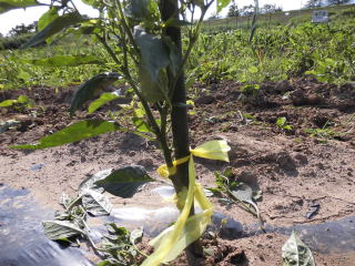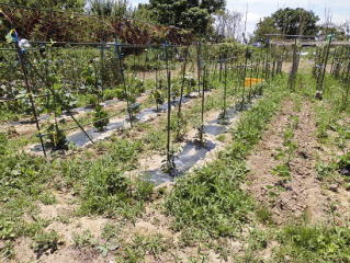 枝が大きくなってきたれら、倒れないように、また、地面に触れないように気をつけます。後はほったらかしです。とにかく雑草取りです。(時間がなくてなかなか出来ません。)