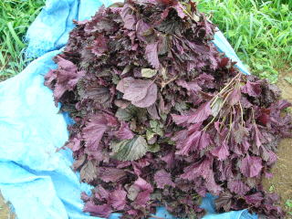 シソの収穫です。約8キロの収穫ですが、梅干しには葉のみ