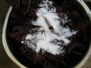 適当な量のシソ葉を別容器に入れ塩を入れる。2020.07.18 13:26 |