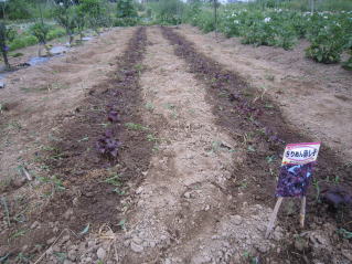 直播シソの芽が出ていないところに定植。水かけ後の状態。2020.06.13 |