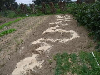 元肥代わりに米糠を蒔きました。この後耕耘します。