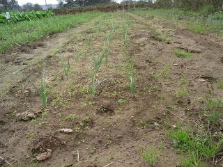 タマネギ、無事越冬していました。消滅している苗もありましたが、かなりの本数が残っていますので今年は期待できそうです。